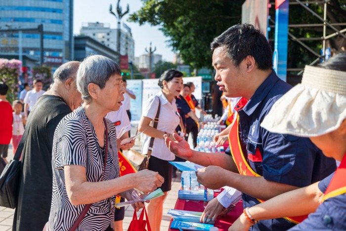 上午8時(shí),設(shè)置在竹湖園廣場的“520”便民服務(wù)點(diǎn),熱鬧不已,炳草崗水廠、怡康飲用水有限公司共產(chǎn)黨員服務(wù)隊(duì)、青年志愿者服務(wù)隊(duì)的隊(duì)員們,禮貌熱情地向群眾介紹集團(tuán)公司“520”服務(wù)品牌建設(shè)理念,發(fā)放“520”民生服務(wù)承諾、現(xiàn)行水價(jià)政策、用水節(jié)水常識等宣傳資料,對群眾關(guān)心的水質(zhì)、水壓、抄表、收費(fèi)等問題進(jìn)行耐心細(xì)致的逐一解答。
