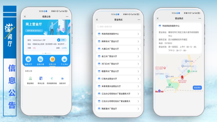 信息公告模塊對(duì)公司營(yíng)業(yè)網(wǎng)點(diǎn),停水通知,服務(wù)熱線等信息進(jìn)行公開發(fā)布,后期我們將持續(xù)進(jìn)行更新。